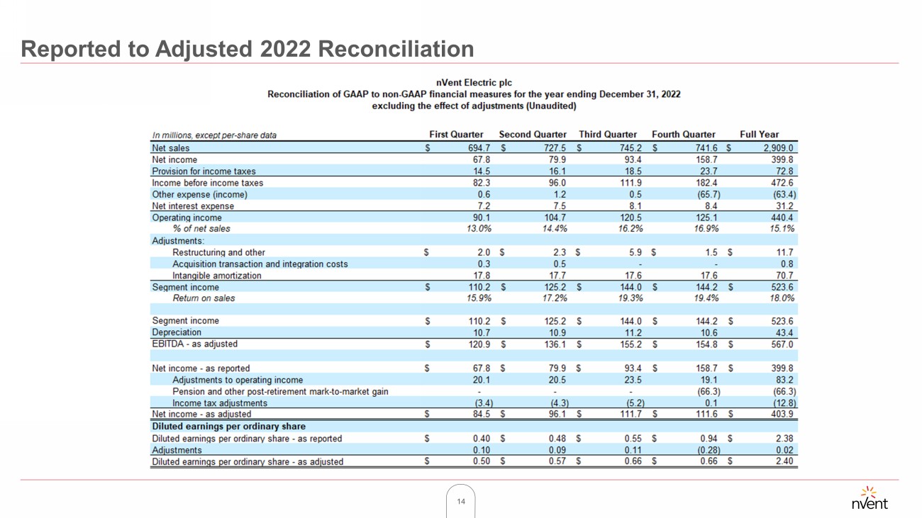 14 Reported to Adjusted 2022 Reconciliation
