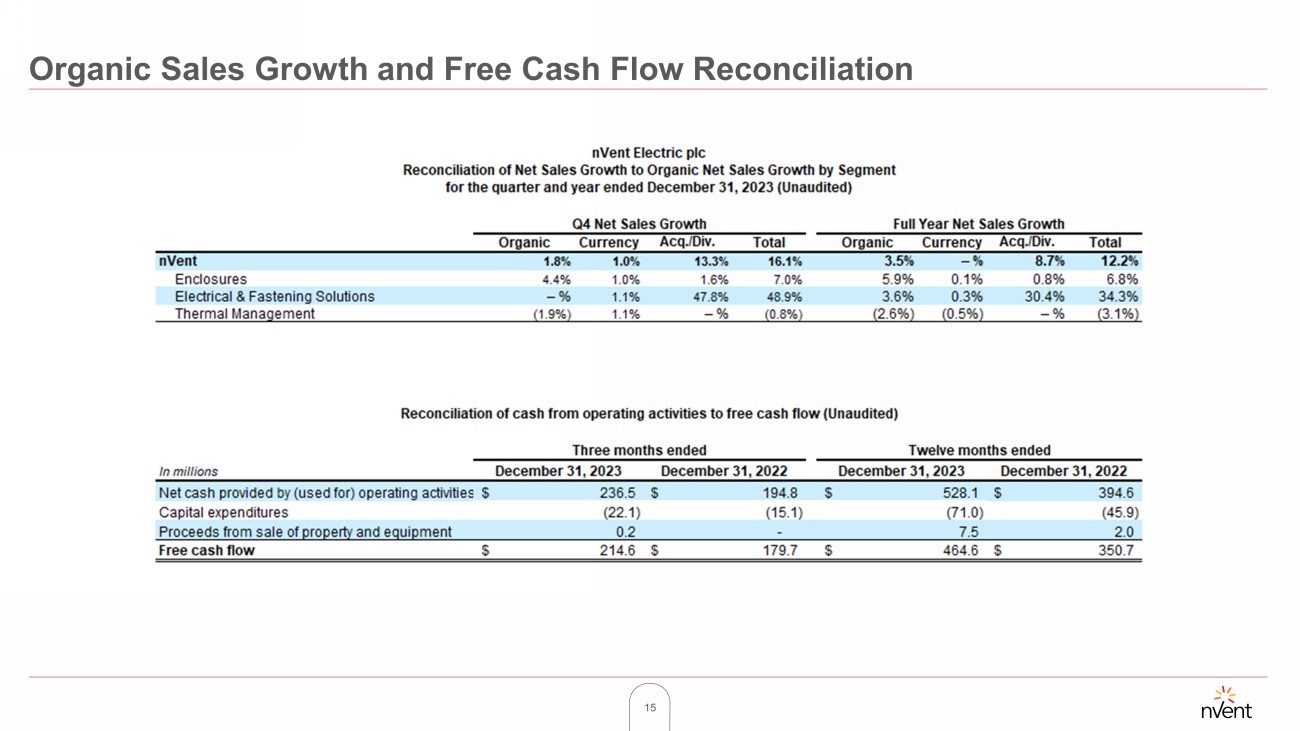 15 Organic Sales Growth and Free Cash Flow Reconciliation