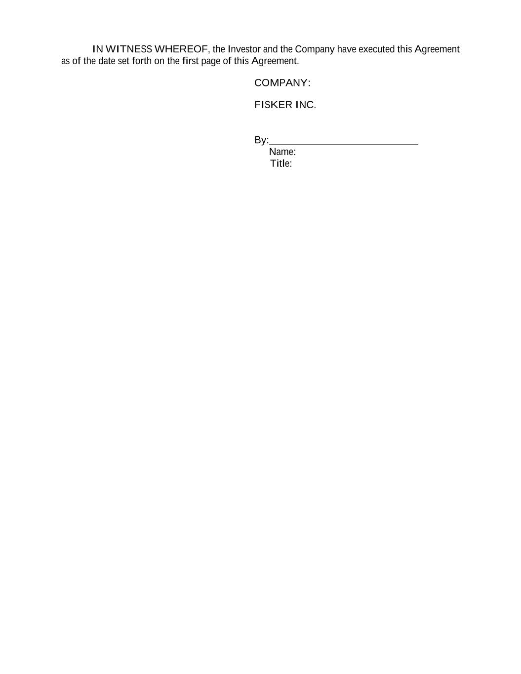 IN WITNESS WHEREOF, the Investor and the Company have executed this Agreement as of the date set forth on the first page of this Agreement. COMPANY: FISKER INC. By: Name: Title: