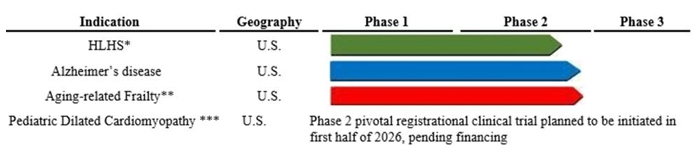 Laromestrocel is a proprietary, scalable, allogeneic cellular therapy that has multiple modes of action that include pro-vascular, pro-regenerative, and anti-inflammatory mechanisms, promoting tissue repair and healing with broad potential applications across a spectrum of disease areas. We are currently pursuing four pipeline indications: Hypoplastic Left Heart Syndrome (“HLHS”), Alzheimer’s disease (“AD”), pediatric Dilated Cardiomyopathy (“DCM”) and Aging-related Frailty. Our mission is to continue to advance the development and regulatory approval of laromestrocel and make it available to all the patients who may need it.