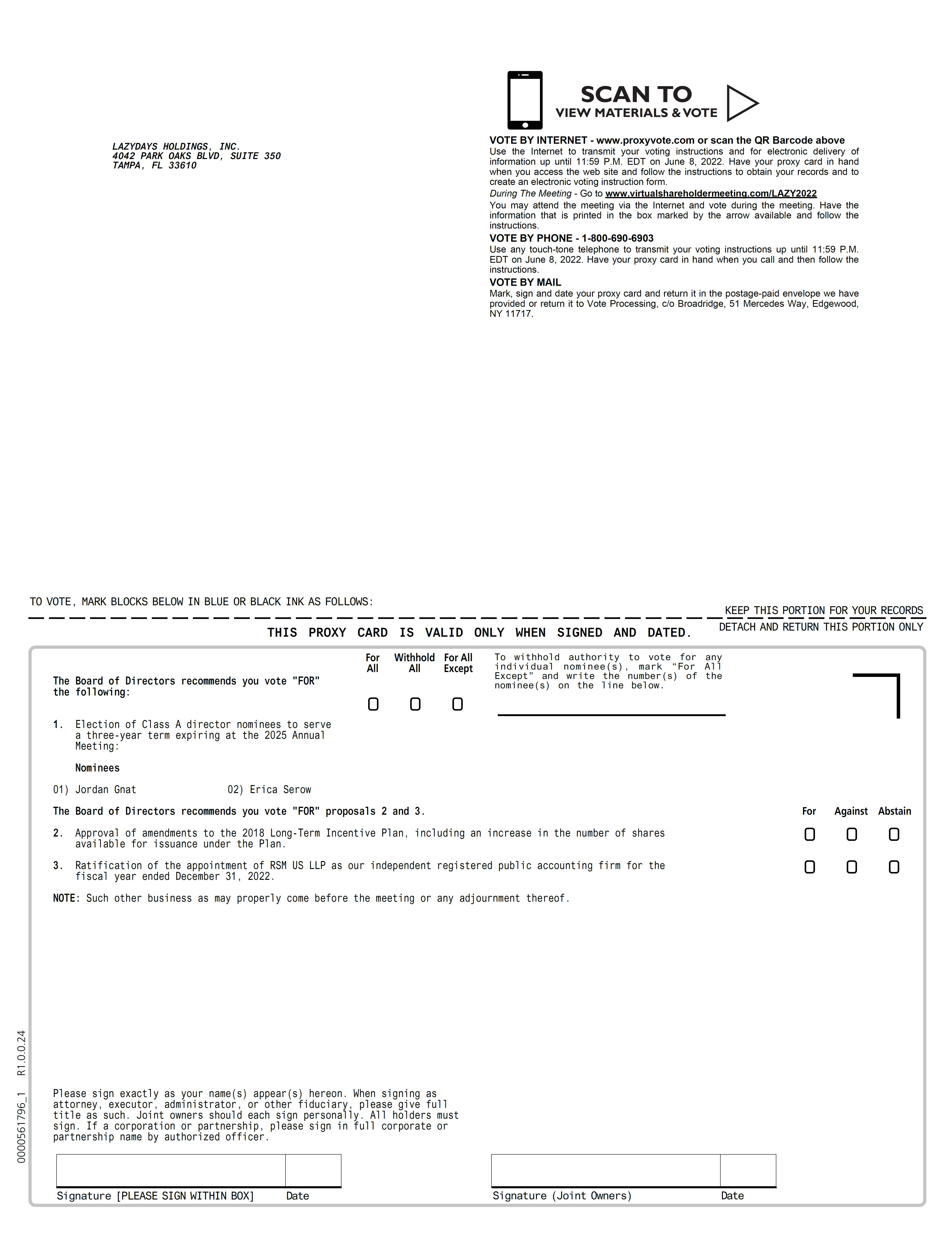 Thank you for your continued support of Lazydays Holdings, Inc. We look forward to your participation at the Annual Meeting.