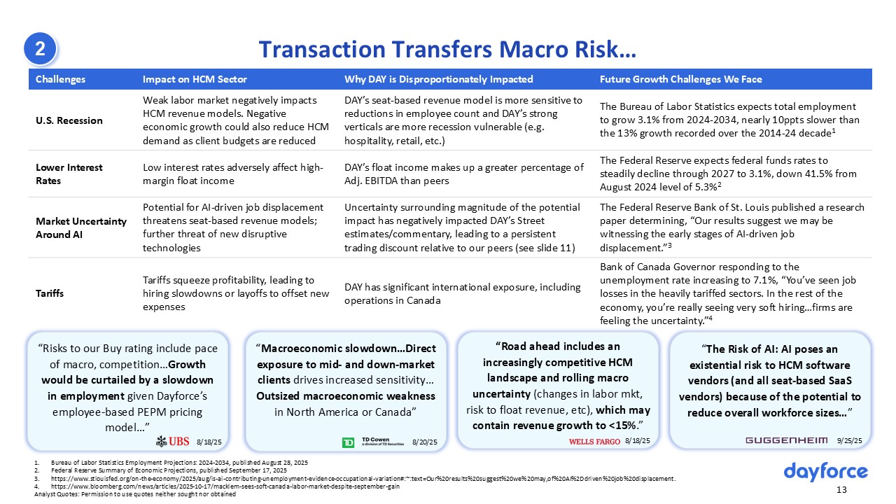 impossible to predict and may differ from assumptions. Many actual events and circumstances are beyond the control of Dayforce. These forward-looking statements are subject to a number of risks and uncertainties, including the timing,