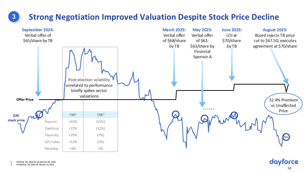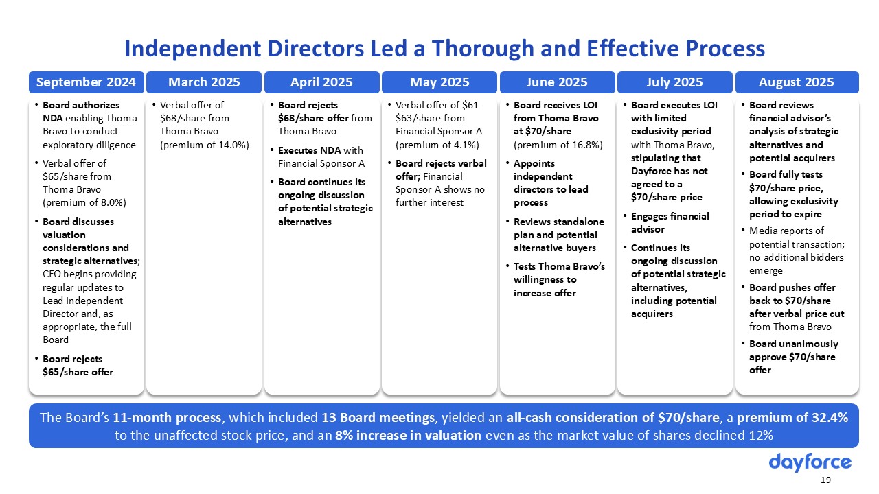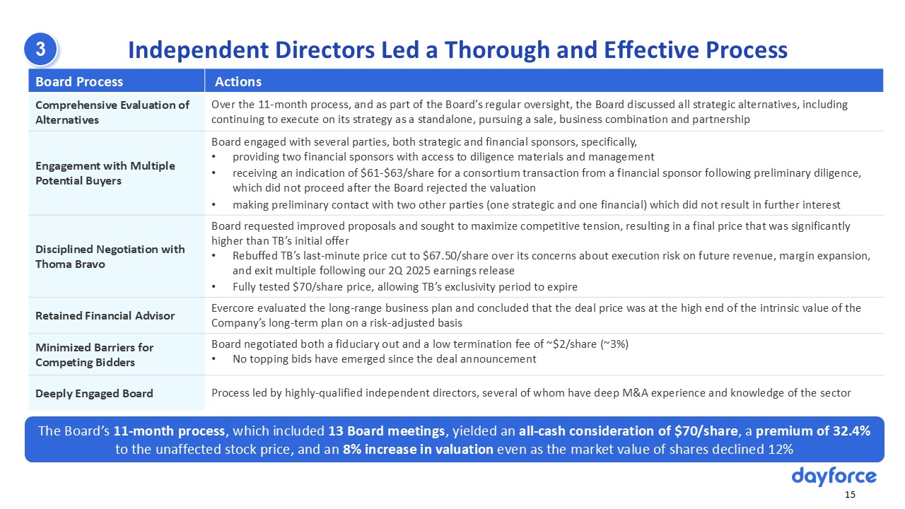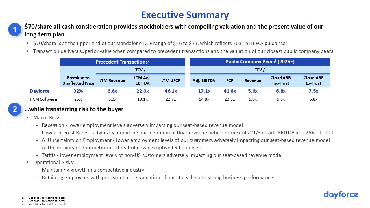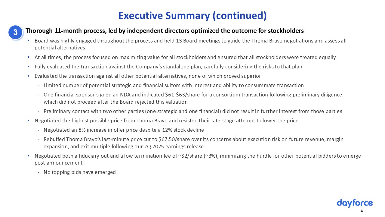 assumes no obligation and does not intend to update these forward-looking statements, except as required by law. Additional Information and Where to Find It In connection with the proposed transaction between Dayforce and Thoma Bravo,