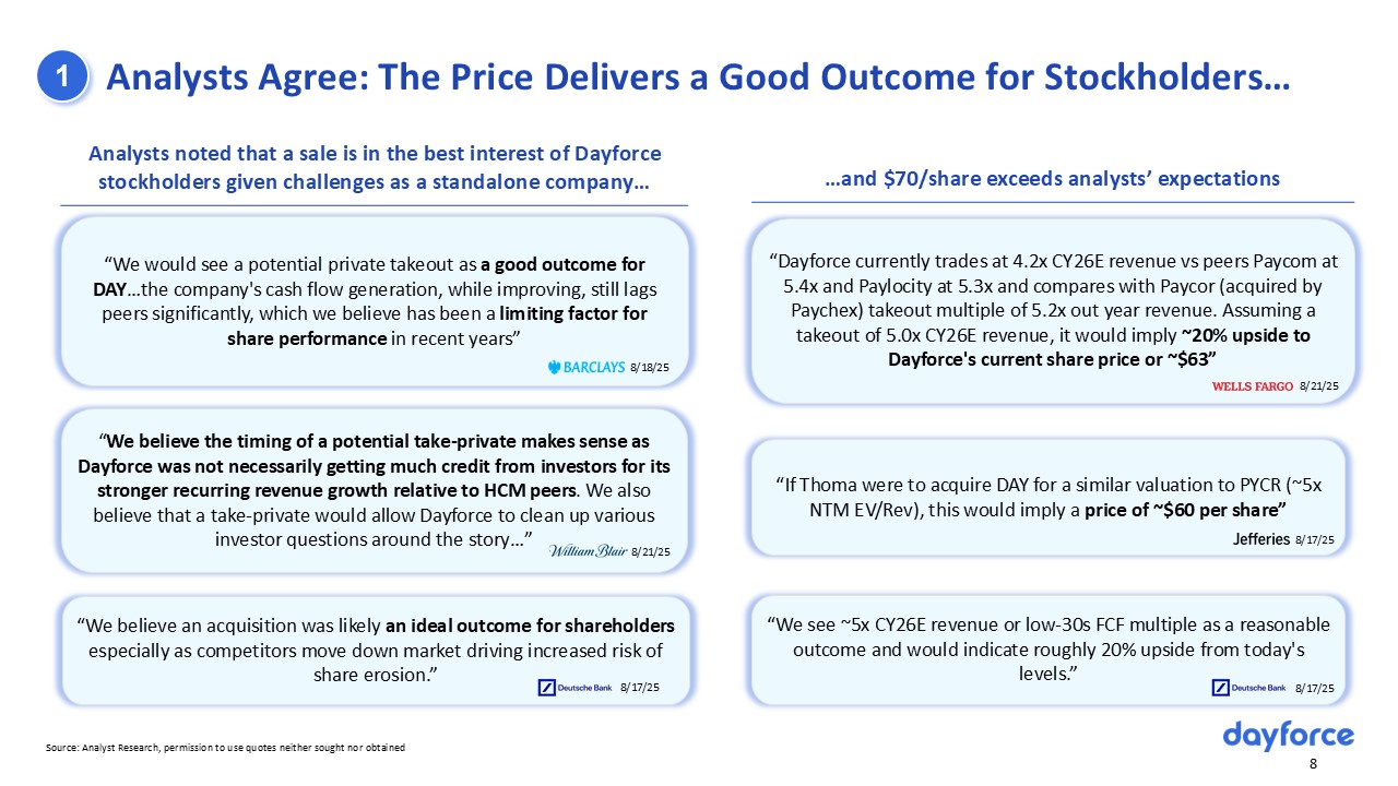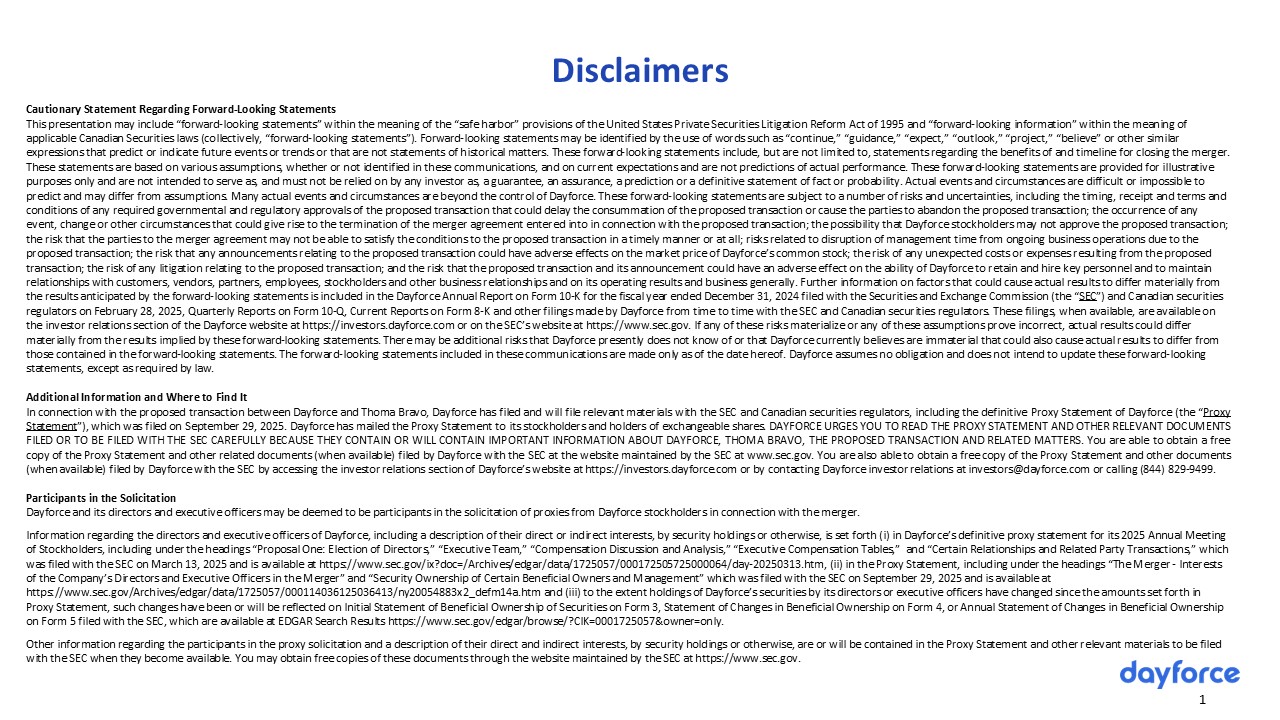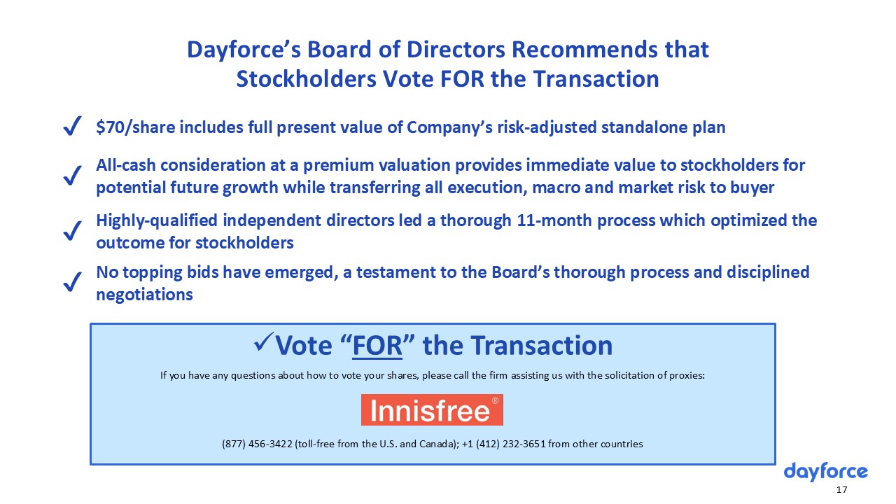 the Proxy Statement to its stockholders and holders of exchangeable shares. DAYFORCE URGES YOU TO READ THE PROXY STATEMENT AND OTHER RELEVANT DOCUMENTS FILED OR TO BE FILED WITH THE SEC CAREFULLY BECAUSE THEY CONTAIN OR WILL CONTAIN