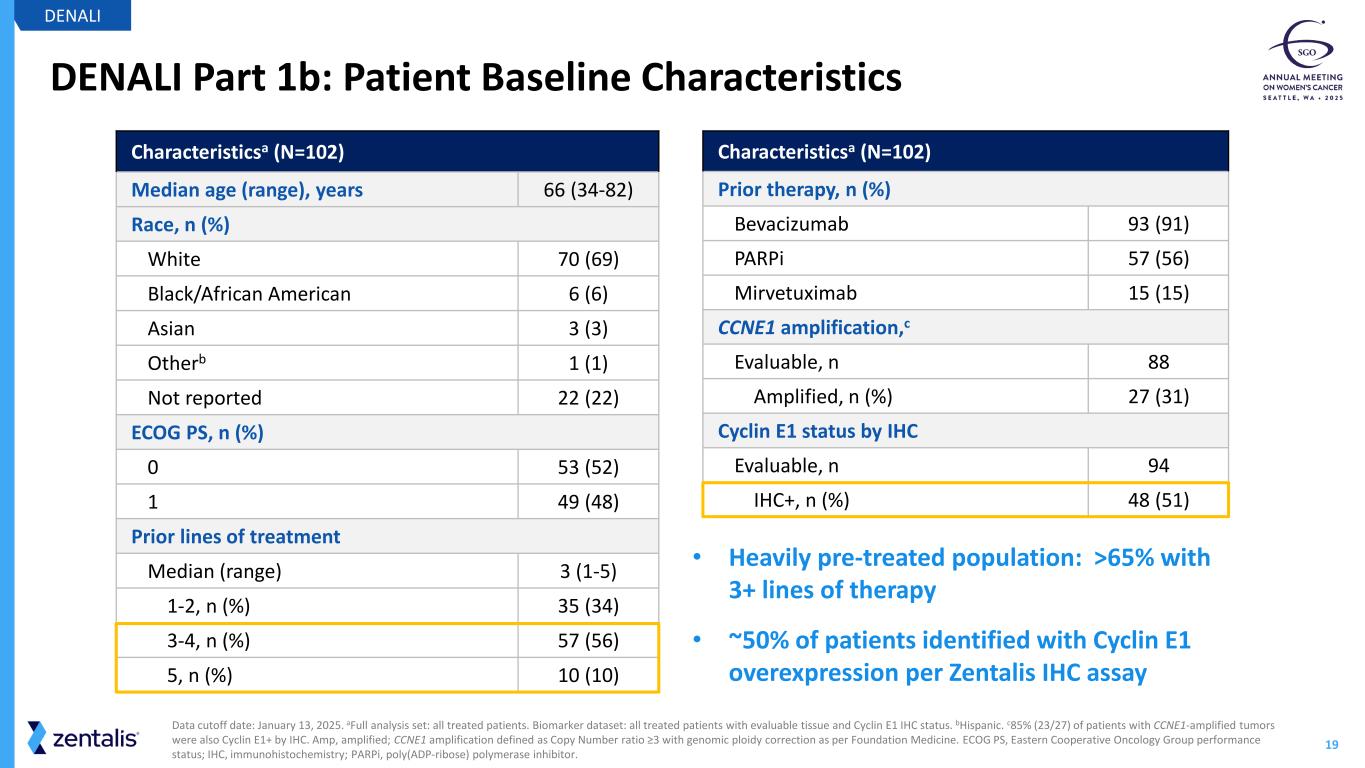 DENALI Part 1b (ZN-c3-005) NCT05198804 Updated data at SGO 2025, Data cutoff January 13, 2025
