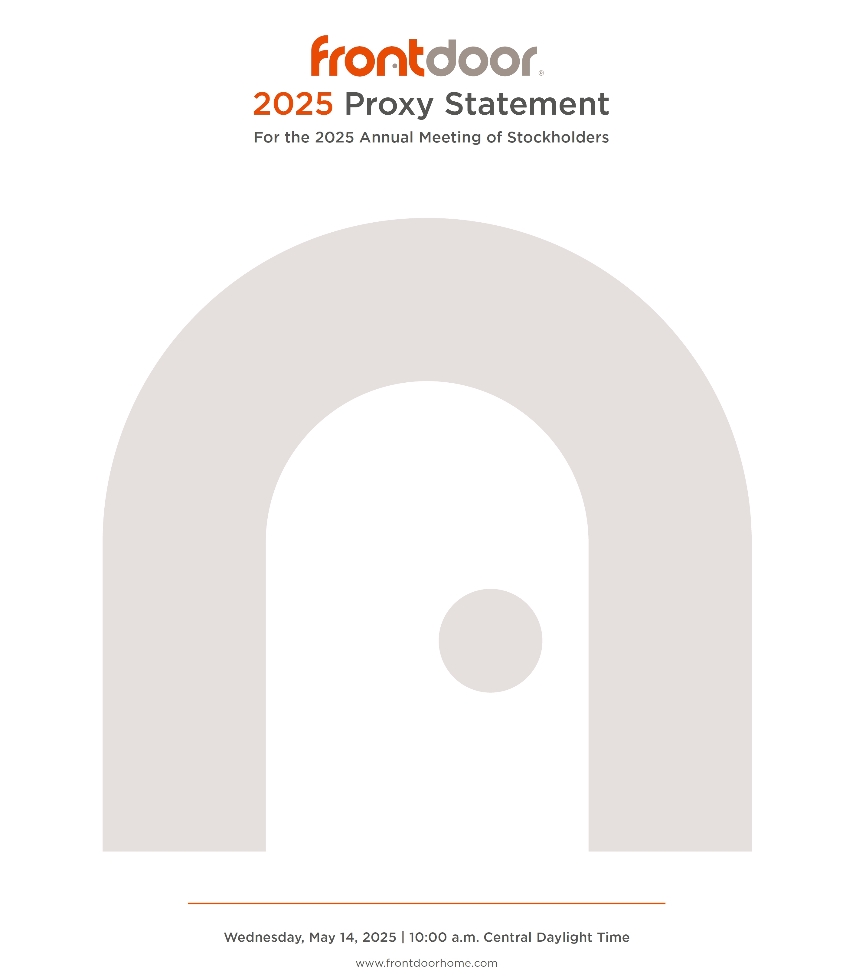 The Board of Directors of Frontdoor, Inc. is furnishing you with this Proxy Statement in connection with the solicitation of proxies for use at the 2025 Annual Meeting to be held via live audio webcast at www.virtualshareholdermeeting.com/FTDR2025 on Wednesday, May 14, 2025 at 10:00 a.m. Central Daylight Time. At the 2025 Annual Meeting, stockholders will be asked to consider and act upon each of the following matters: