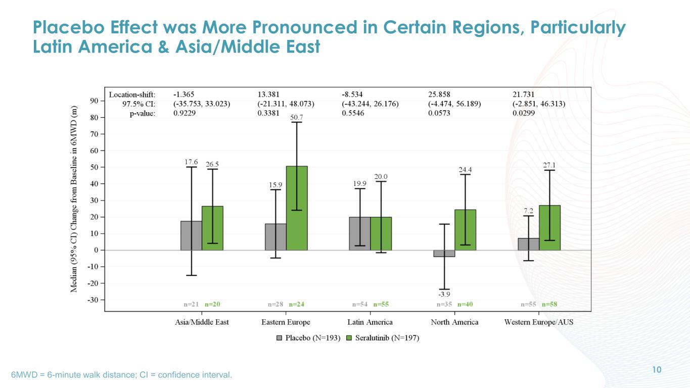 Placebo Effect was More Pronounced in Certain Regions, Particularly Latin America & Asia/Middle East 6MWD = 6-minute walk distance; CI = confidence interval. 10