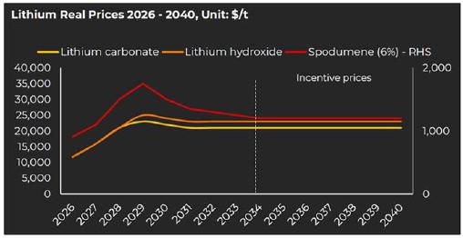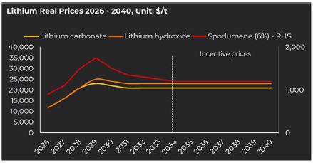 Benchmark Minerals Intelligence (BMI) prepared a Lithium Forecast Report for Sayona Quebec dated Quarter 1, 2025. The annual benchmark spodumene 6.0% sales prices, as shown in the following chart, were applied and scaled to the 5.80% spodumene concentrate that Authier will produce over the life of the operation.