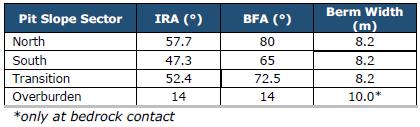 The initial geotechnical parameters for the pit design were prepared by Journeaux in 2018. Consultants BBA performed an internal review of the Journeaux report and provided additional recommendations to ensure stability of the pit walls: