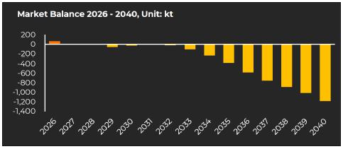 The NAL Ore Reserves have been estimated with an effective date of 30 June 2025. A total of 48.6Mt of Proven and Probable Ore Reserves are estimated at an average grade of 1.11% Li2O, which is comprised of 0.3Mt of Proven Ore Reserves at an average grade of 1.01% Li2O and 48.2Mt of Probable Ore Reserves at an average grade of 1.11% Li2O.