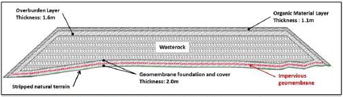Results of the geochemical characterisation of waste rock concluded that waste rock is not high-risk level and not acid generating with ~70% of the waste rock considered metal leaching. The current approach is to place all waste rock in the same storage facility with level A groundwater protection measures installed at the foundation of the waste rock stockpile.
