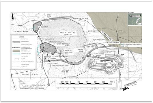 The site requires standard mining infrastructure, such as maintenance facilities, offices, water management and a waste rock storage facility, to complete the proposed life-of-mine plan.