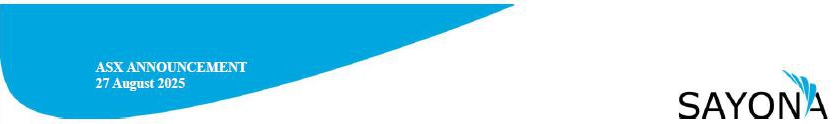 | info@sayonamining.com.au | ASX: SYA | ACN 091 951 978 | sayonamining.com.au |