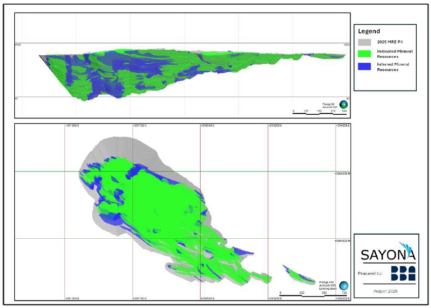 Figure 4 - Longitudinal and Plan Views illustrating Indicated and Inferred Mineral Resources from 2025 MRE