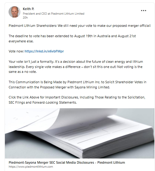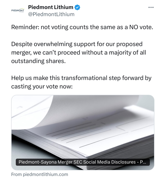 This merger could significantly impact the future of Piedmont Lithium—take a few minutes to vote and