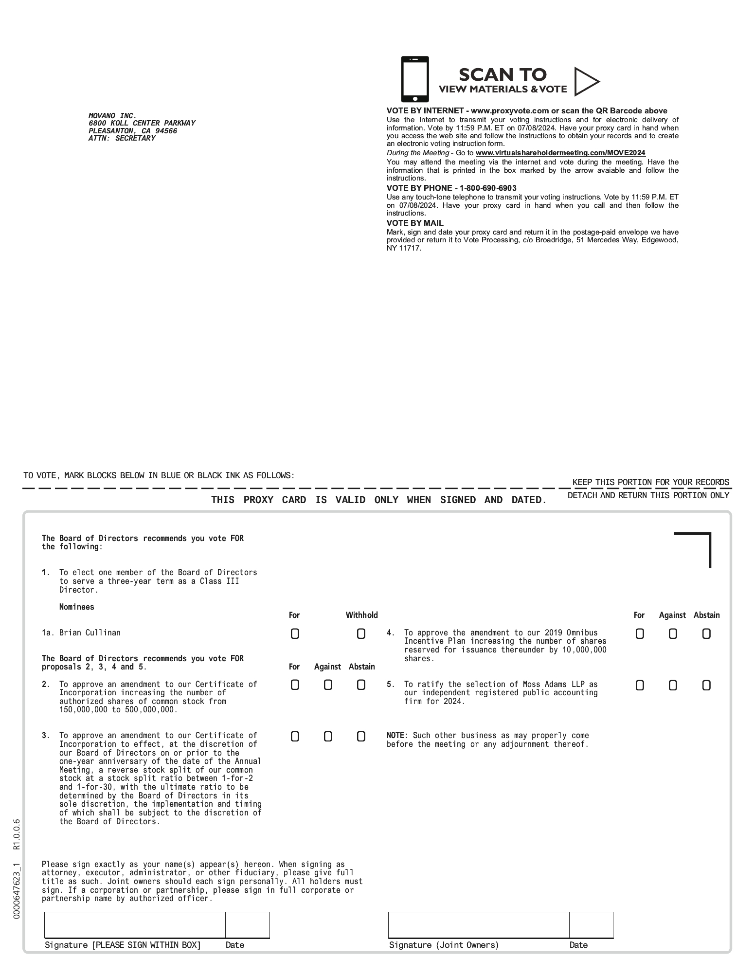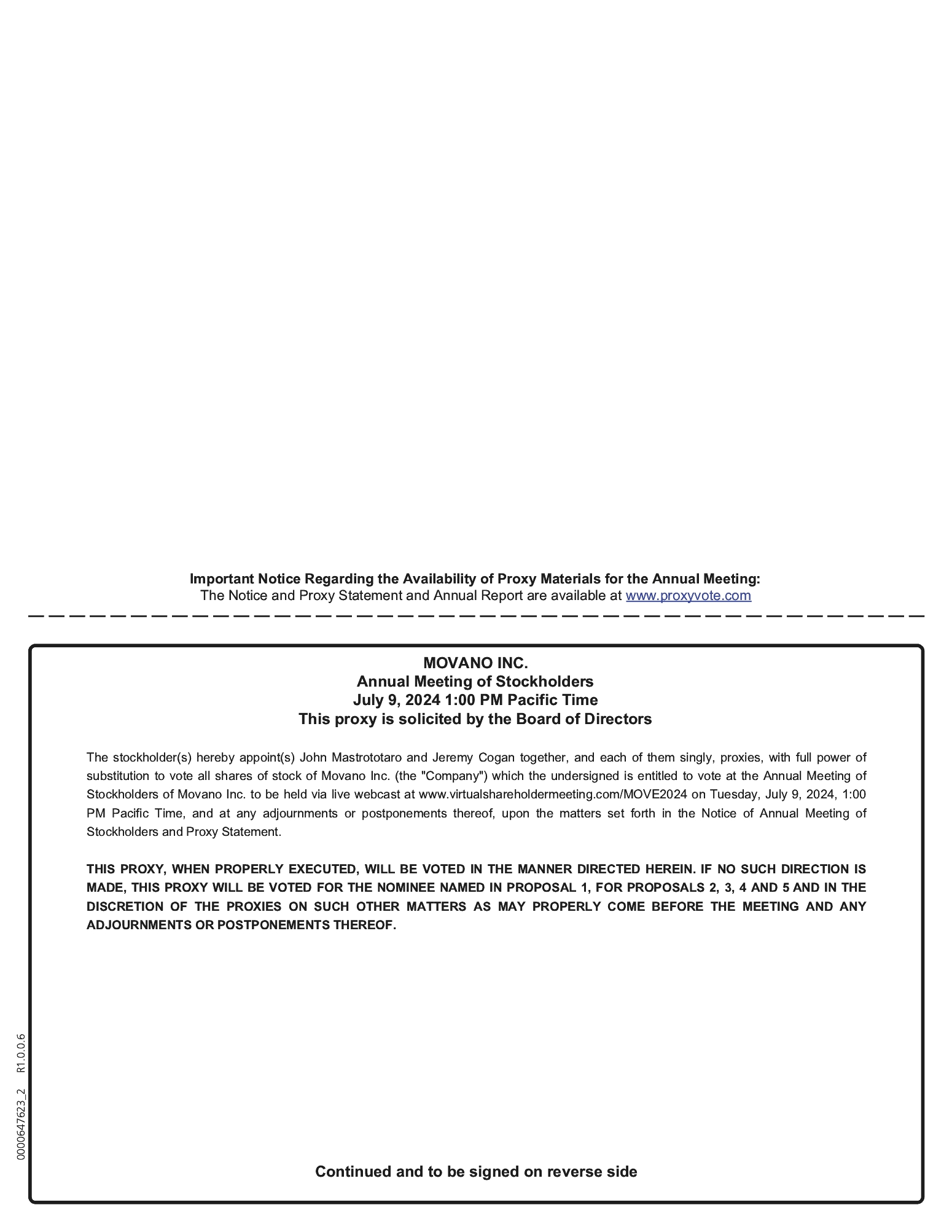 • | Instructions on how to attend and participate via the Internet, including how to demonstrate proof of stock ownership, are posted at https://www.virtualshareholdermeeting.com/MOVE2024. |