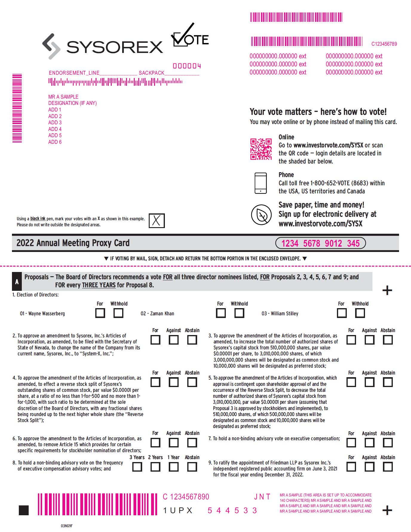 We appreciate your investment and interest in Sysorex, Inc. and urge you to cast your vote as soon as possible.