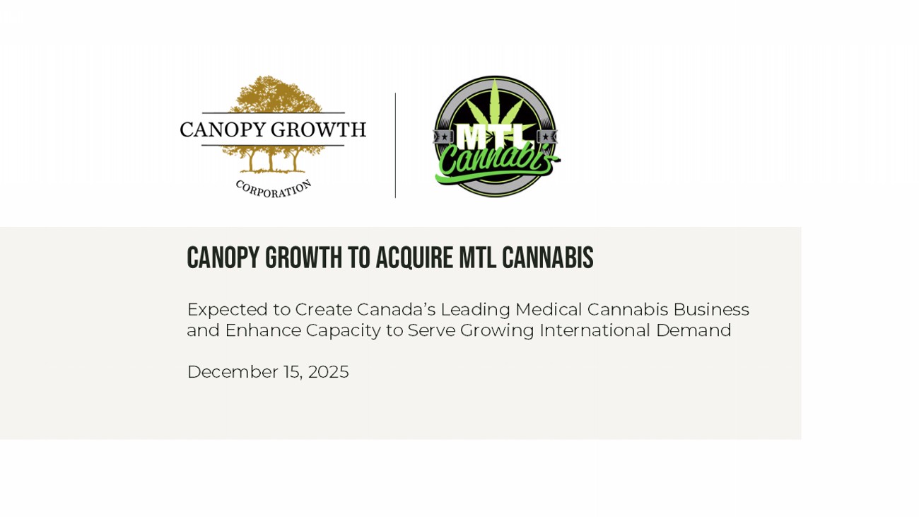 Canopy Growth to Acquire MTL Cannabis Expected to Create Canada’s Leading Medical Cannabis Business and Enhance Capacity to Serve Growing International Demand December 15, 2025