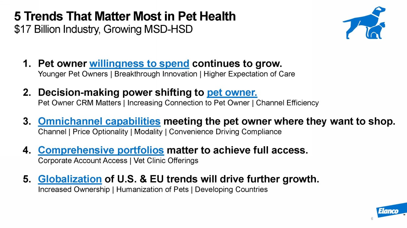 5 Trends That Matter Most in Pet Health $17 Billion Industry, Growing MSD - HSD 6 1. Pet owner willingness to spend continues to grow. Younger Pet Owners | Breakthrough Innovation | Higher Expectation of Care 2. Decision - making power shifting to pet owner. Pet Owner CRM Matters | Increasing Connection to Pet Owner | Channel Efficiency 3. Omnichannel capabilities meeting the pet owner where they want to shop. Channel | Price Optionality | Modality | Convenience Driving Compliance 4. Comprehensive portfolios matter to achieve full access. Corporate Account Access | Vet Clinic Offerings 5. Globalization of U.S. & EU trends will drive further growth. Increased Ownership | Humanization of Pets | Developing Countries
