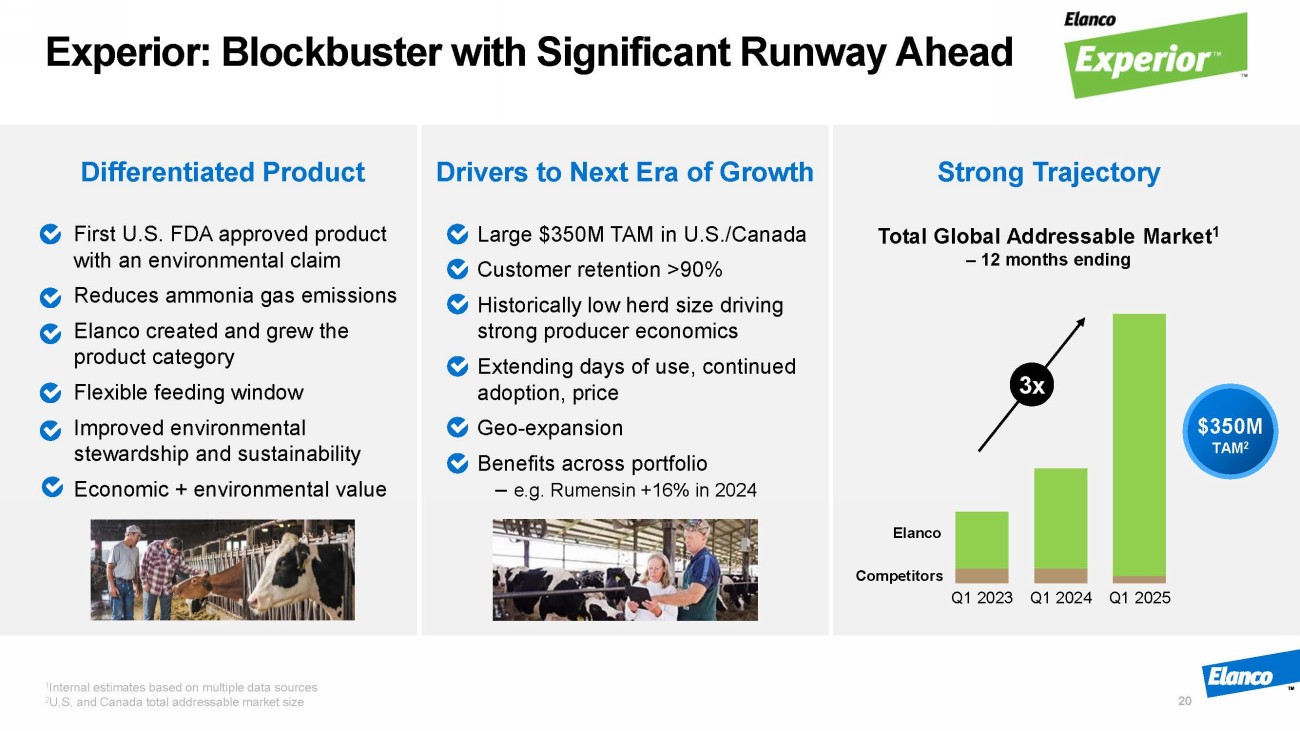 Experior: Blockbuster with Significant Runway Ahead 20 Strong Trajectory Differentiated Product Drivers to Next Era of Growth First U.S. FDA approved product with an environmental claim Reduces ammonia gas emissions Elanco created and grew the product category Flexible feeding window Improved environmental stewardship and sustainability Economic + environmental value Large $350M TAM in U.S./Canada Customer retention >90% Historically low herd size driving strong producer economics Extending days of use, continued adoption, price Geo - expansion Benefits across portfolio – e.g. Rumensin +16% in 2024 Q1 2023 Q1 2024 Q1 2025 Elanco Competitors $350M TAM 2 Total Global Addressable Market 1 – 12 months ending 3x 1 Internal estimates based on multiple data sources 2 U.S. and Canada total addressable market size