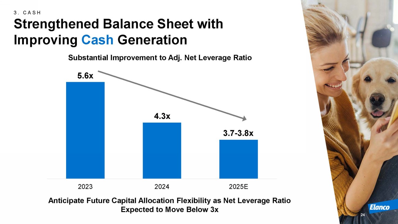 3. CASH Strengthened Balance Sheet with Improving Cash Generation Anticipate Future Capital Allocation Flexibility as Net Leverage Ratio Expected to Move Below 3x Substantial Improvement to Adj. Net Leverage Ratio 5.6 x 2023 2024 2025E 4.3x 3.7 - 3.8x 24