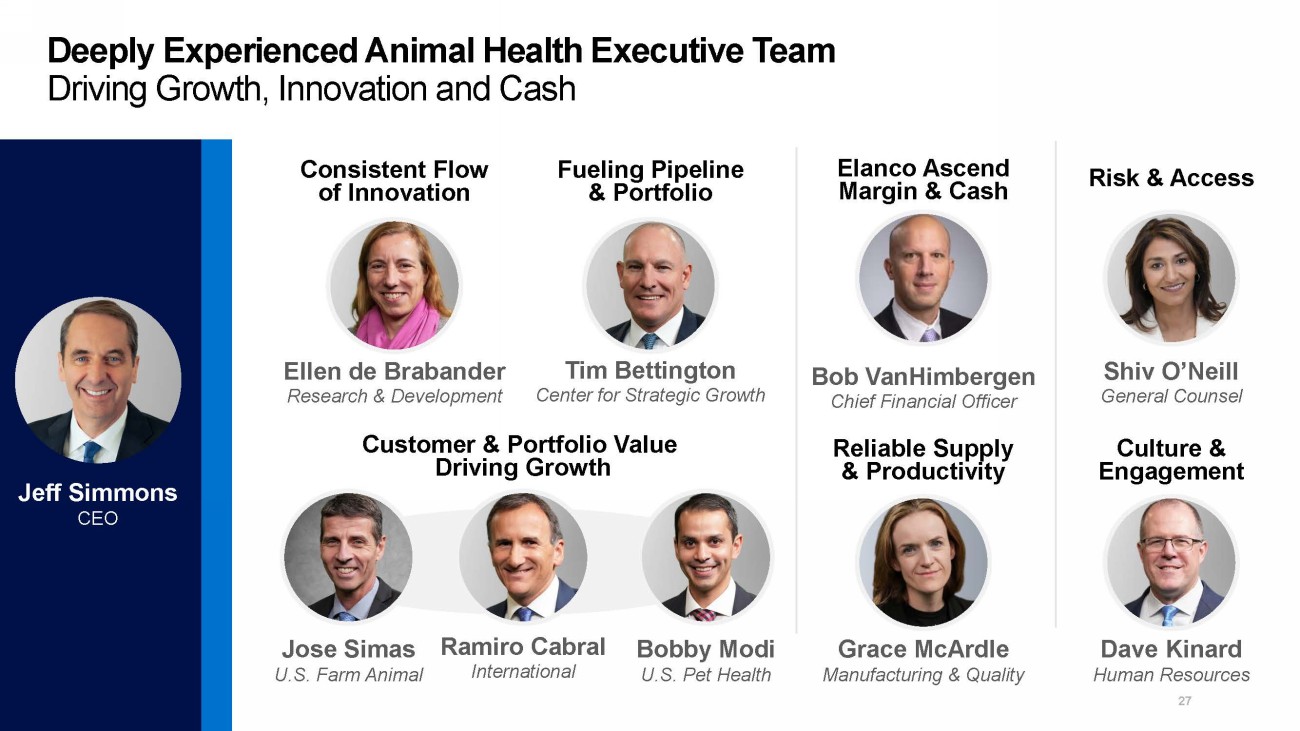 5 Reasons Elanco Will Win 26 2 1 3 Pivoting to New Financial Profile A Rebuilt Innovation Engine Proven Strategy with Growing Momentum A Stronger, Stabilized Portfolio 3 4 2 1 5 Foundation: Team & Culture