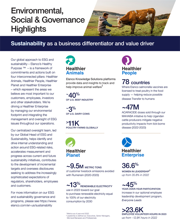 Additionally, we prioritize attracting, retaining, and developing a workforce with the skills and diversity of experience to innovate and bring new products to market. Ultimately, our team is grounded in the passionate pursuit of our purpose. For the past seven decades the Elanco team has been guided by a deep collective belief – going beyond for our customers makes life better for animals, making life better.