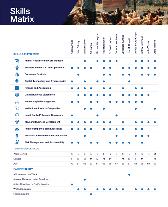 As announced in January, the Board has selected Lawrence E. Kurzius to be the next Chairman at the conclusion of the 2024 annual meeting. Lawrence has been an independent director at Elanco since 2018 and brings strong leadership experience as the Executive Chairman and former CEO of McCormick and Company, a global food company.