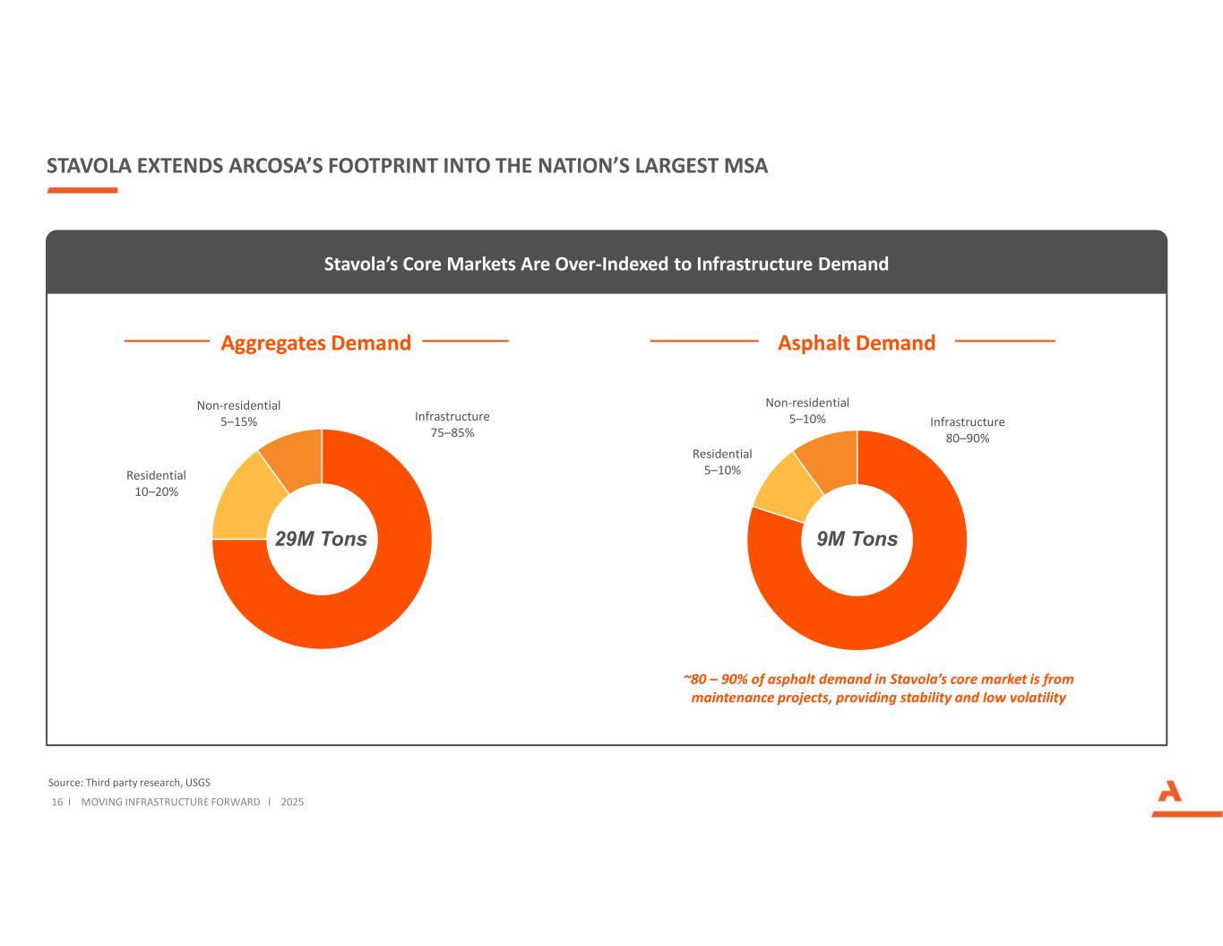 15 I MOVING INFRASTRUCTURE FORWARD I 2025 STAVOLA EXPANDS AND DIVERSIFIES CONSTRUCTION PRODUCTS’ GEOGRAPHIC FOOTPRINT Our Aggregates Business Now Serves 13 of the 50 Largest MSAs Natural Aggregates Recycled Aggregates Asphalt Stavola Locations Incremental Presence from Stavola Construction Products Segment Existing Natural & Recycled Aggregates presence * * * * * Multiple locations