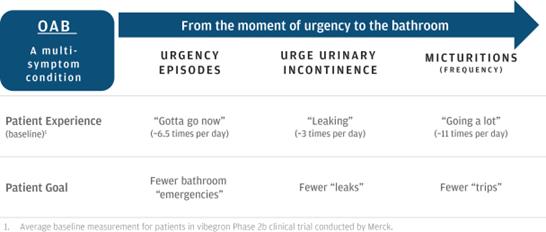 | • | the potential advantages and differentiated profile of vibegron compared to existing therapies for OAB; |