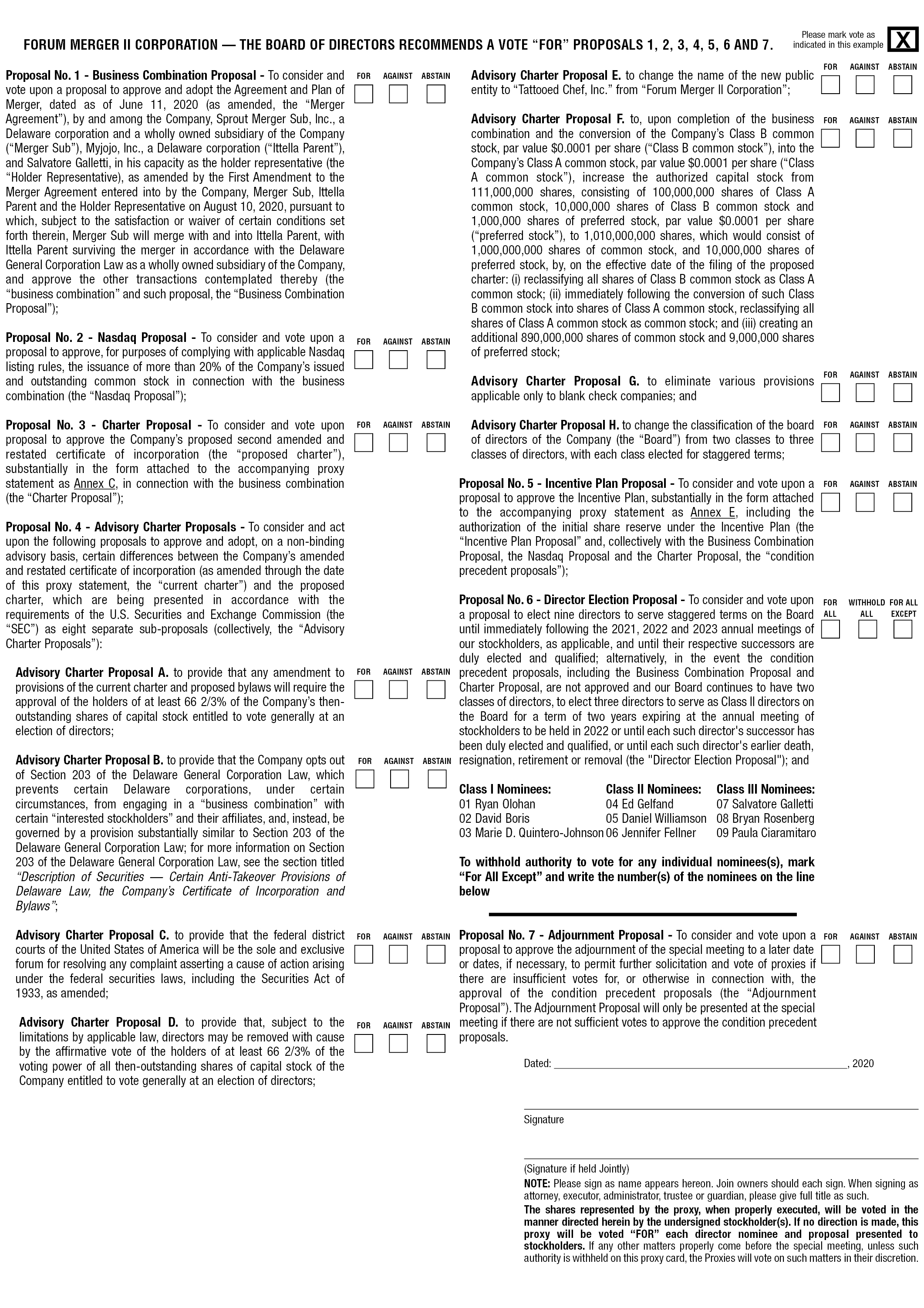 e. to change the name of the new public entity to “Tattooed Chef, Inc.” from “Forum Merger II Corporation” (“Advisory Charter Proposal E”);