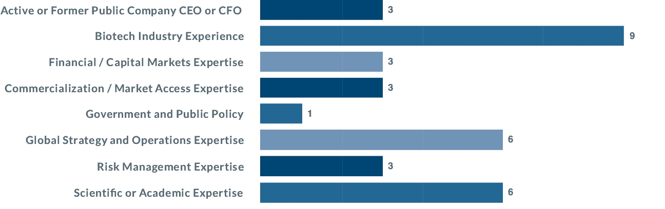 | | | We believe Ms. Blunt is qualified to serve on our Board due to her experience running a national health care consulting firm, the depth of her knowledge around reimbursement and patient access and her prior experience working in the biopharmaceutical industry. |