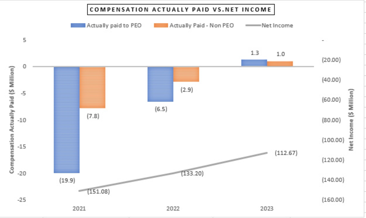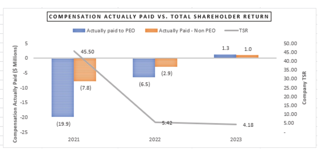 Year | | | Summary Compensation Table Total for PEO(1) ($) | | | CAP to PEO(1)(2) ($) | | | Average Summary Compensation Table Total for Non-PEO NEOs(3) ($) | | | Average CAP to Non-PEO NEOs(2)(3) ($) | | | Value of Initial Fixed $100 Investment Based On Total Shareholder Return(4) ($) | | | Net Income (Loss)(5) ($) |