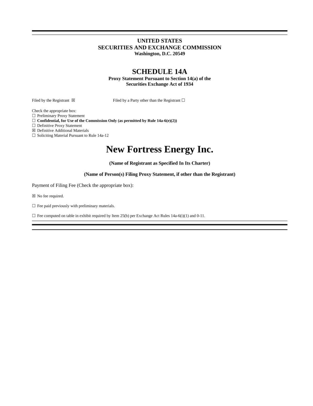 Your Vote Counts! Smartphone users Point your camera here and vote without entering a control number For complete information and to vote, visit www.ProxyVote.com Control # V74777-P31355 NEW FORTRESS ENERGY INC. 111 WEST 19TH STREET 8TH FLOOR NEW YORK, NY 10011 NEW FORTRESS ENERGY INC. 2025 Annual Meeting Vote by June 17, 2025 11:59 PM Eastern Time Vote in Person at the Meeting* June 18, 2025 9:00 AM Eastern Time Skadden, Arps, Slate, Meagher & Flom LLP and Affiliates One Manhattan West New York, NY 10001 You invested in NEW FORTRESS ENERGY INC. and it’s time to vote! You have the right to vote on proposals being presented at the Annual Meeting. This is an important notice regarding the availability of proxy materials for the stockholder meeting to be held on June 18, 2025. Get informed before you vote View the Notice and Proxy Statement and Annual Report online OR you can receive a free paper or email copy of the material(s) by requesting prior to June 4, 2025. If you would like to request a copy of the material(s) for this and/or future stockholder meetings, you may (1) visit www.ProxyVote.com, (2) call 1-800-579-1639 or (3) send an email to sendmaterial@proxyvote.com. If sending an email, please include your control number (indicated below) in the subject line. Unless requested, you will not otherwise receive a paper or email copy.