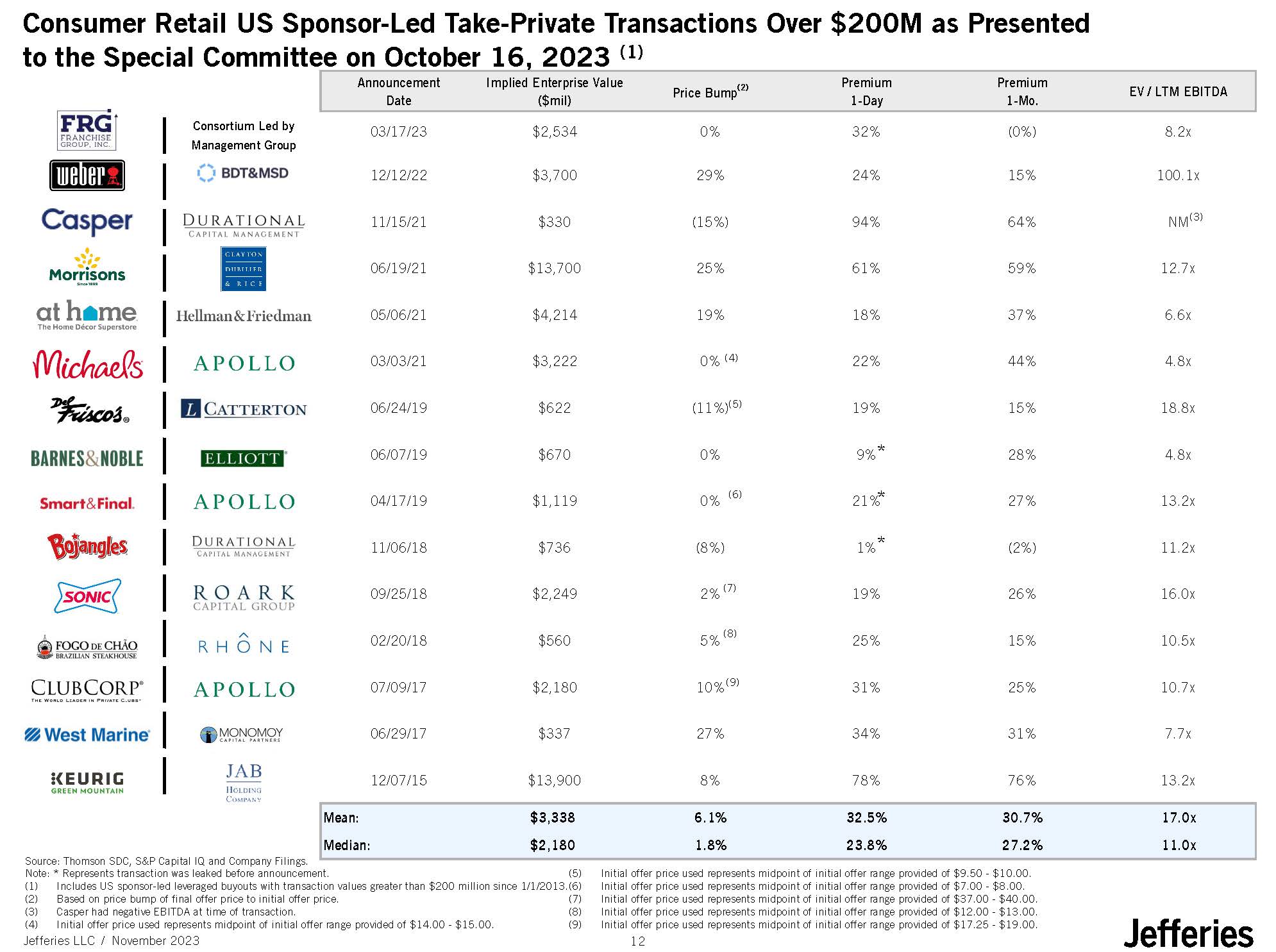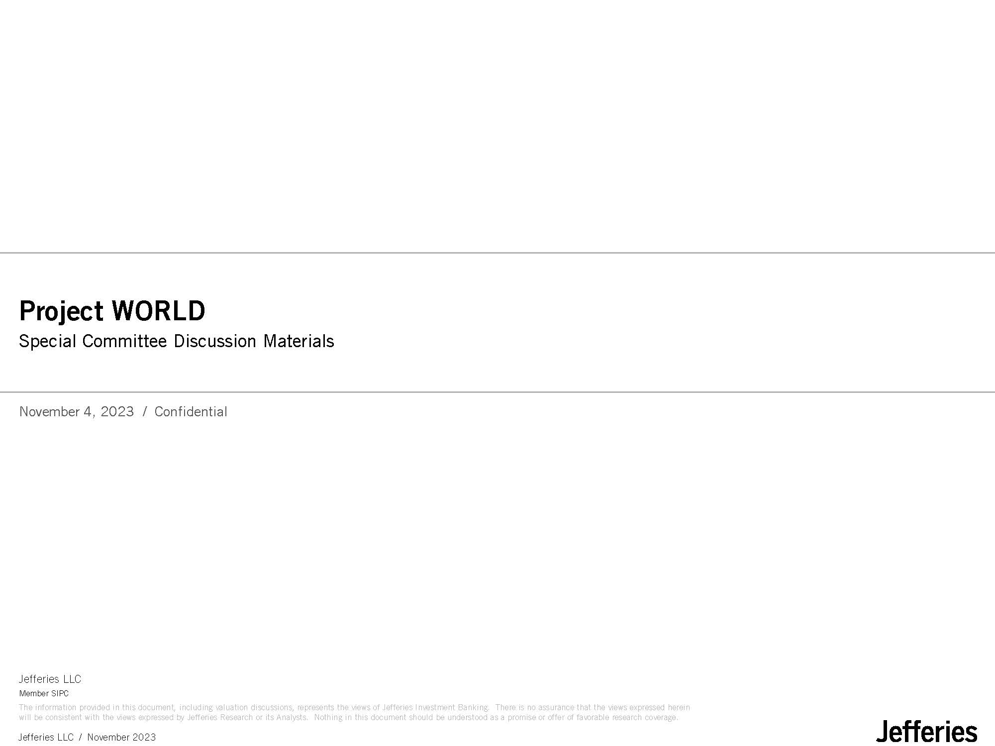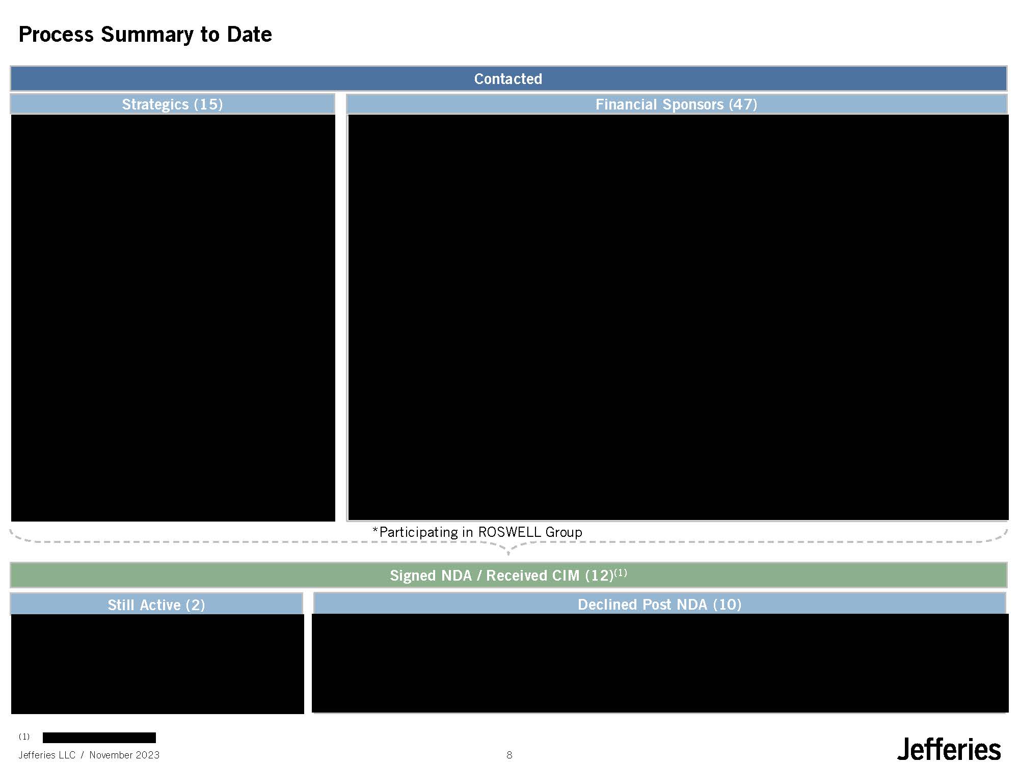 Simon 1,262,970 4.2 3.0% Albert Manzone 295,737 1.0 0.7% Ira Lamel 190,405 0.6 0.4% Jefferies Jefferies LLC / November 2023 14 Current Stockholder Overview as Presented to the Special Committee on October 16, 2023 NasdaqCM: