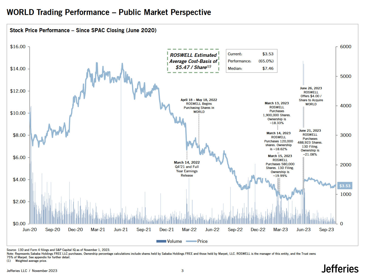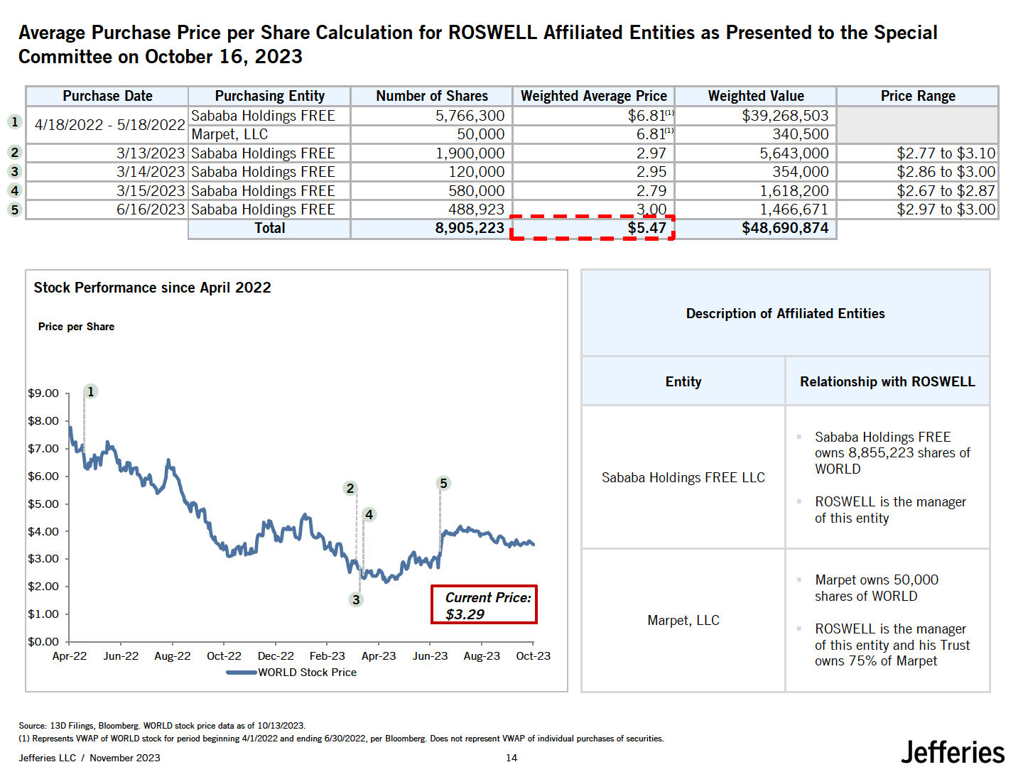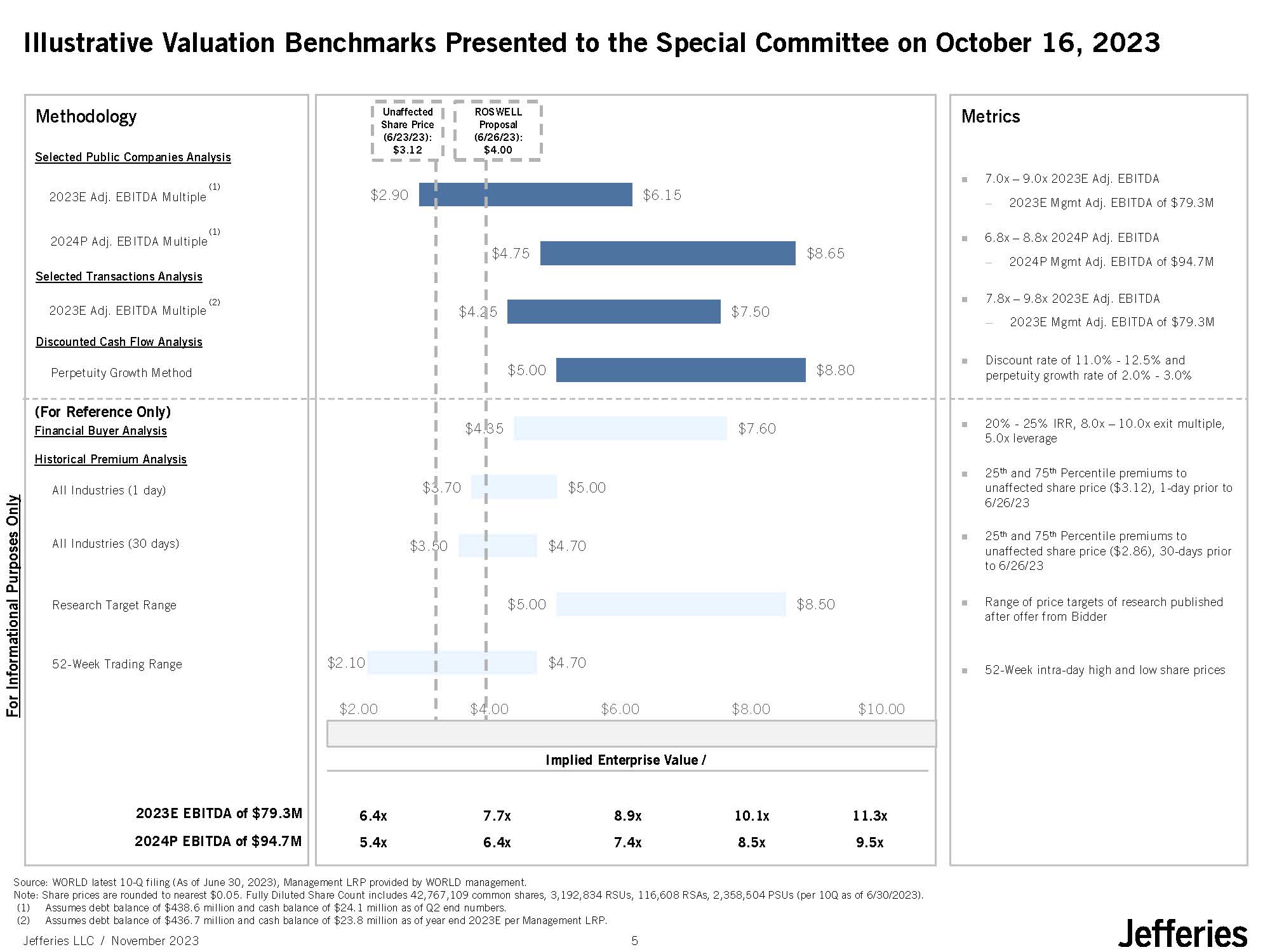 Simon 1,262,970 4.2 3.0% Albert Manzone 295,737 1.0 0.7% Ira Lamel 190,405 0.6 0.4% Jefferies Jefferies LLC / November 2023 14 Current Stockholder Overview as Presented to the Special Committee on October 16, 2023 NasdaqCM: