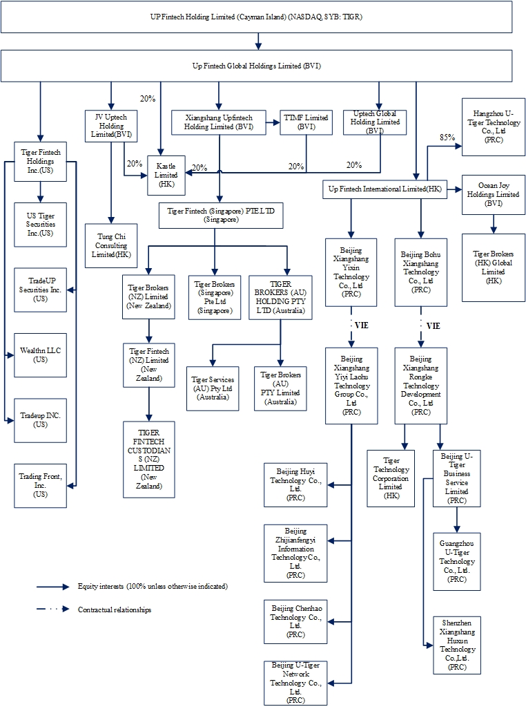 UP Fintech Holding Limited, together with its consolidated subsidiaries (collectively, the “Company” or the “Group”), is a leading integrated financial technology platform providing cross-market, multi-product investment experience for investors around the world. In this annual report on Form 20-F, unless otherwise specified or the context otherwise indicates, all references to “UP Fintech Holding Limited” and the “Company” refer to the business and operations of the Company and its consolidated subsidiaries.