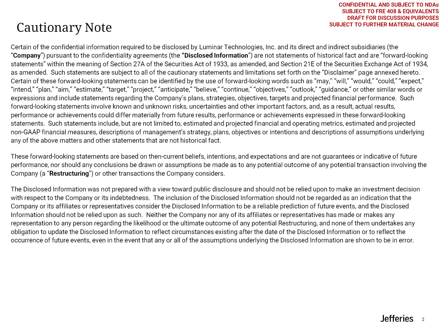 no duty to update the Materials. The Materials may contain certain forward-looking statements, including financial projections, and are subject to all of the cautionary statements as set forth in the “Cautionary Note.” Such forward-looking
