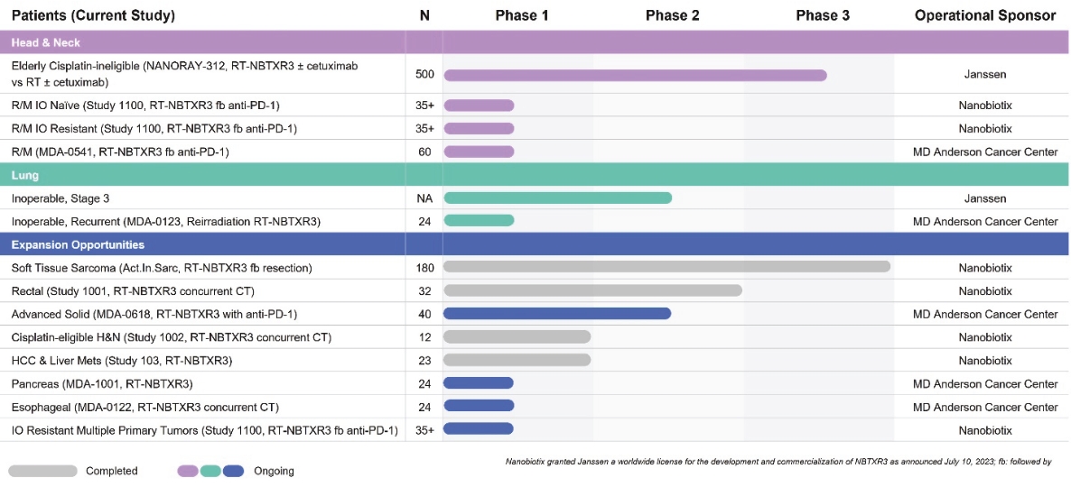 • | the expected timeline of our clinical trial completion, including our ability, and the ability of our development partners, to successfully conduct, supervise and monitor clinical trials for our product candidates, including, without limitation, the completion of our pivotal clinical trial NANORAY-312 relating to NBTXR3 within the expected timelines, subject to various factors, including enrollment rates and any potential impacts associated with the transfer of sponsorship of this clinical trial from Nanobiotix to Janssen; |