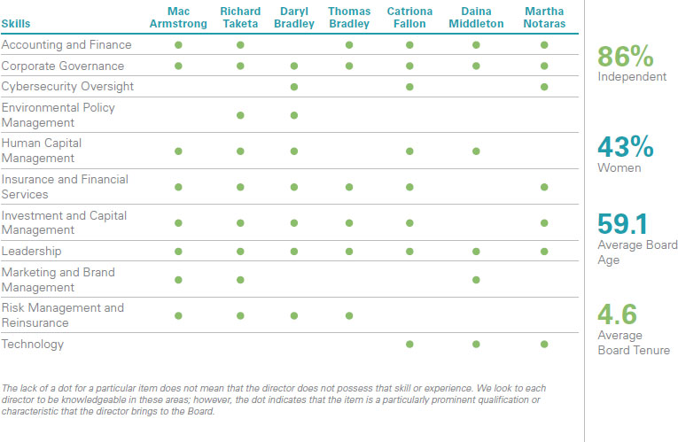 The following charts set forth the ages, background, skills, and independence status of our Board as of April 1, 2025.