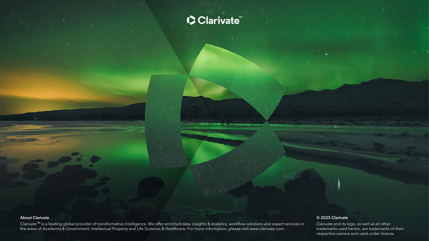 © 2025 Clarivate Clarivate and its logo, as well as all other trademarks used herein, are trademarks of their respective owners and used under license. About Clarivate Clarivate is a leading global provider of transformative intelligence. We offer enriched data, insights & analytics, workflow solutions and expert services in the areas of Academia & Government, Intellectual Property and Life Sciences & Healthcare. For more information, please visit www.clarivate.com