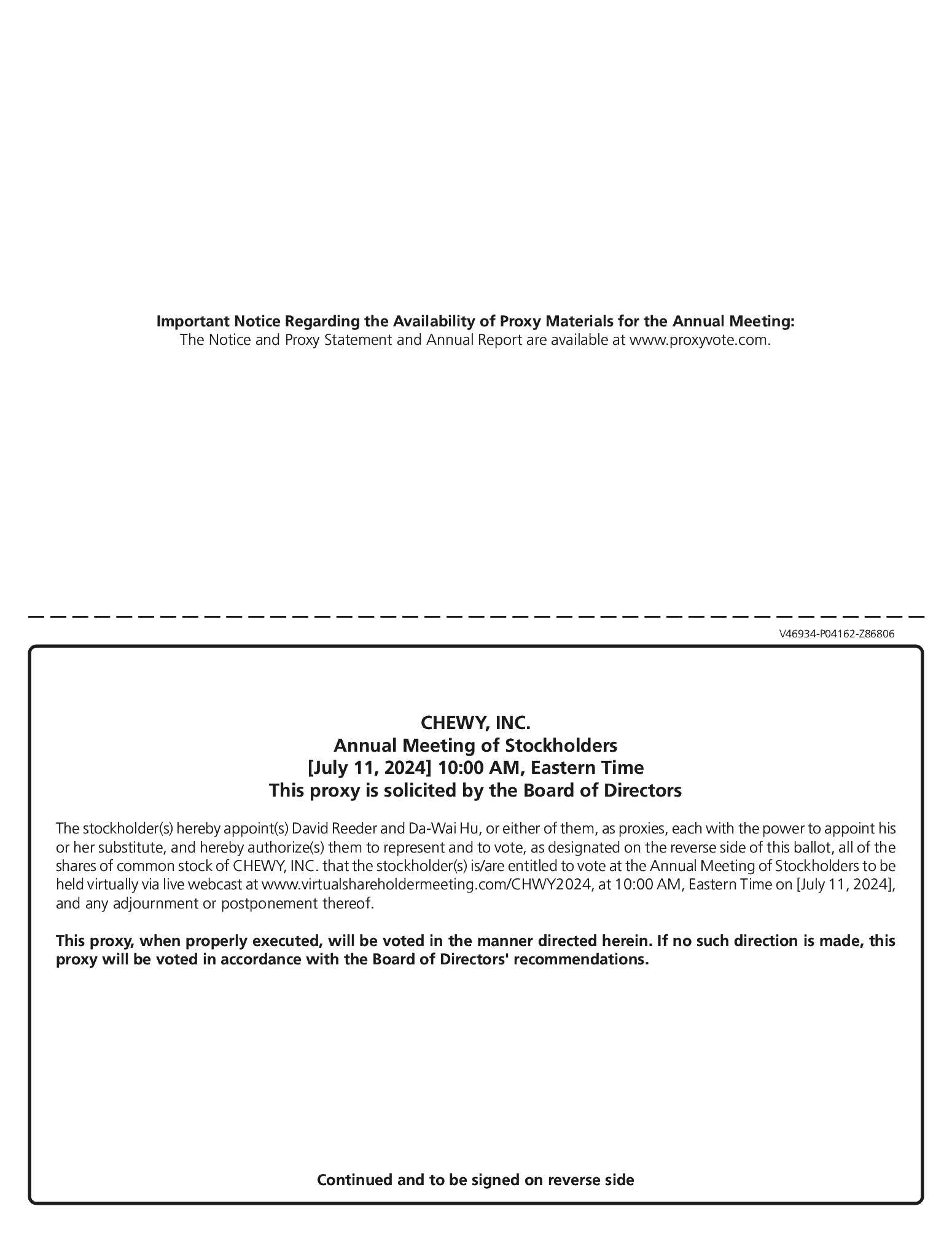 WHAT: | | | 2024 Annual Meeting of Stockholders of Chewy, Inc. (the “Annual Meeting”). | |||