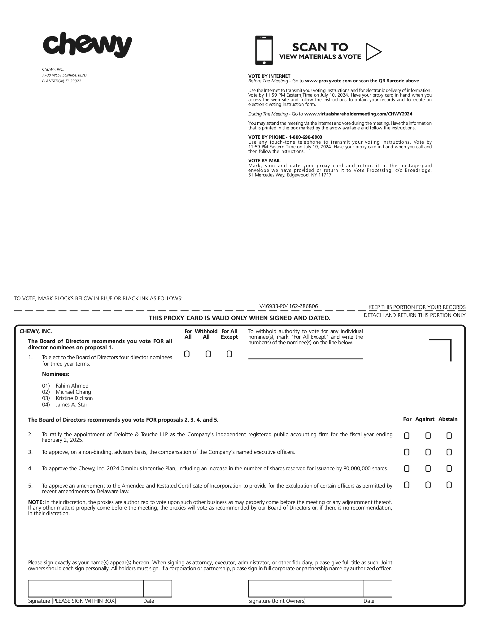 WHAT: | | | 2024 Annual Meeting of Stockholders of Chewy, Inc. (the “Annual Meeting”). | |||