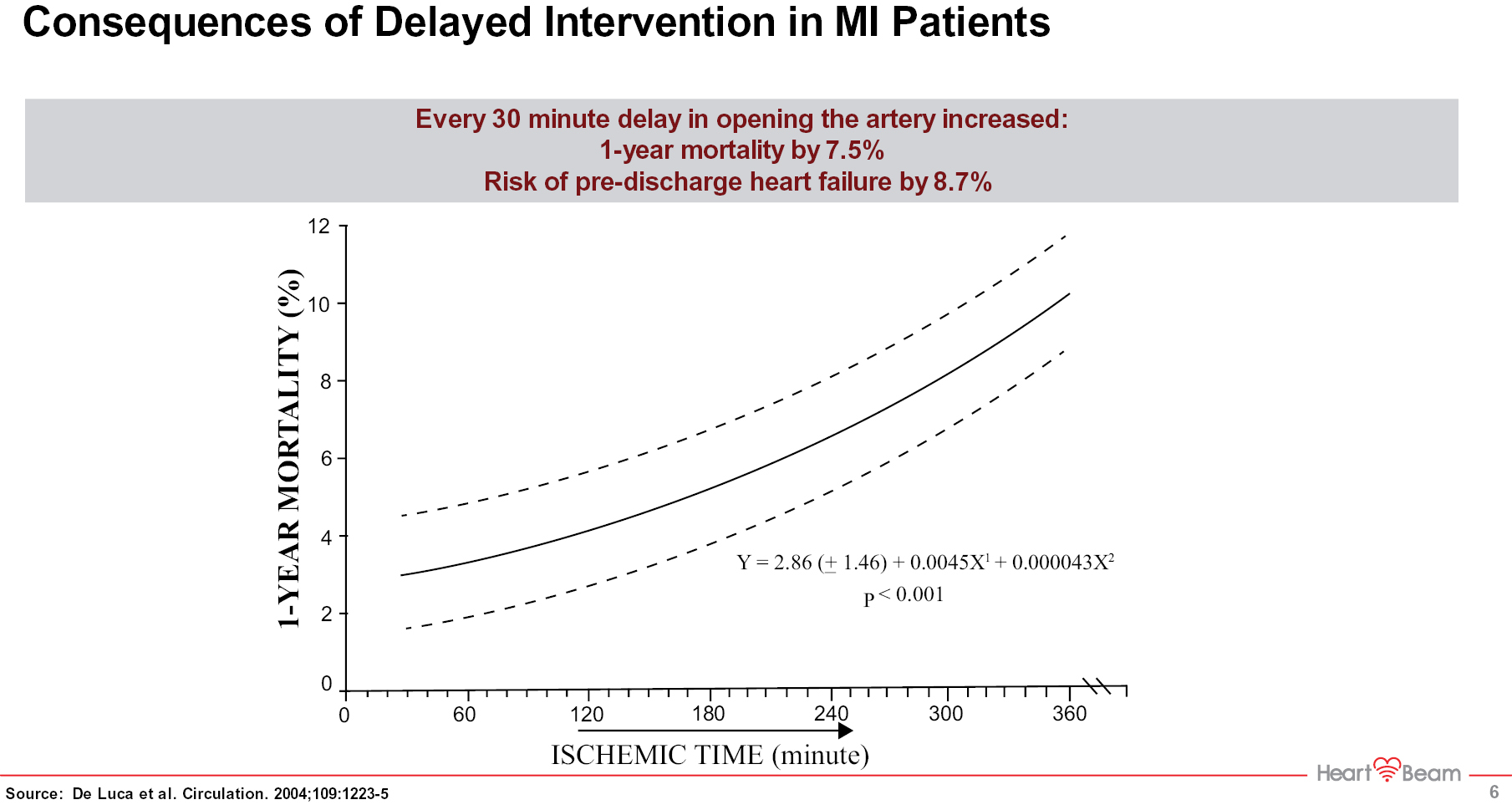 Every 40 seconds someone in the US has a heart attack, or myocardial infarction (MI). Unfortunately, there is no way for patients to tell whether the symptoms they are experiencing are due to an MI, or some other more benign condition such as indigestion. As a result, patients often ignore symptoms and delay seeking care, which leads to worse outcomes and increased mortality. On the other hand, many patients who go to the Emergency Room with chest pain are not experiencing an MI. Chest pain is the second most common reason for an ER visit, yet fewer than 20% of chest pain ER visits result in a diagnosis of a life-threatening condition. These unnecessary ER visits lead to well over $10 billion in unnecessary healthcare expenditures.