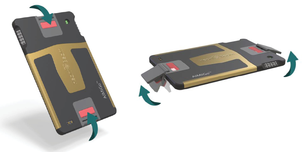 Our telehealth HeartBeam AIMIGo system will be a prescription-only mobile health system intended for individuals with known or suspected heart disease, especially CAD. It helps guide physicians in choosing the best course of action for their patients who experience chest pain outside of a medical facility. HeartBeam AIMIGo will bring a medical grade ECG to patients and will enable them to receive a plan of action from a physician in a timely manner. At the time of onboarding and at regularly scheduled time intervals, patients record a baseline 30 second cardiac reading using our device. When a patient experiences symptoms, such as irregular heartbeats or chest pain, the patient can simply open the smartphone application and press the credit card sized device against the chest to collect signals that can be converted to a synthesized 12-lead ECG. This synthesized 12-lead ECG is sent to the physician overlayed with the patient’s synthesized baseline ECG recording. In addition, the patient provides input on their symptoms that is sent, along with the ECG data, to the cloud for interpretation by a physician. A cloud-based algorithm processes the signals and displays the symptom description and patient history to a physician to analyze and prescribe an action plan. From start to finish, the process takes just a few minutes.