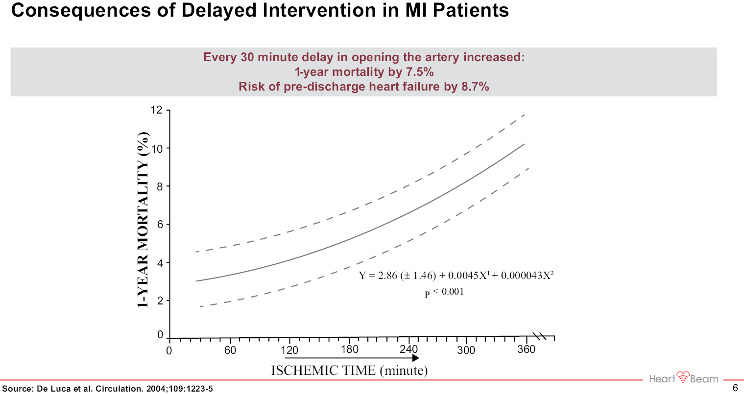 Every 40 seconds someone in the US has a heart attack, or MI. Unfortunately, there is no way for patients to tell whether the symptoms they are experiencing are due to an MI, or some other more benign condition such as indigestion. As a result, patients often ignore symptoms and delay seeking care, which leads to worse outcomes and increased mortality. On the other hand, many patients who go to the ED with chest pain are not experiencing an MI. Chest pain is the second most common reason for an ED visit in patients over 45, yet fewer than 20% of chest pain ED visits result in a diagnosis of a life-threatening condition. These unnecessary ED visits lead to well over $10 billion in unnecessary healthcare expenditures.