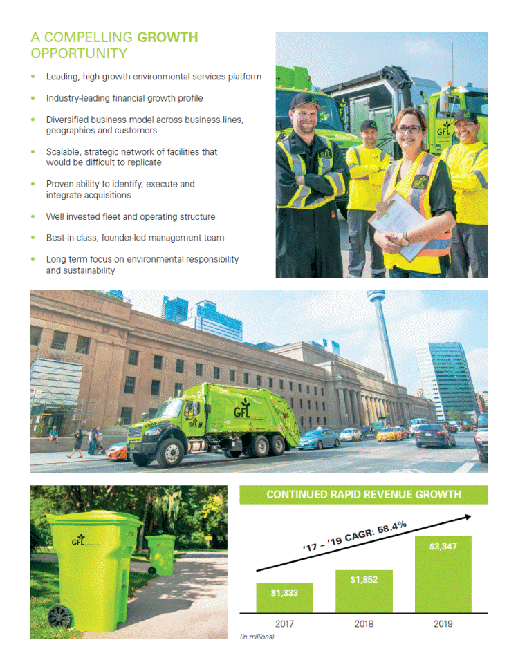 this offering. Unless otherwise indicated, all references in this prospectus to "GFL", "we", "our", "us", "the Company" or similar terms refer to GFL Environmental Inc. and its consolidated subsidiaries assuming the completion of the Pre-Closing Capital Changes (as defined herein and which includes the amalgamation of Holdings and GFL Environmental Inc.).