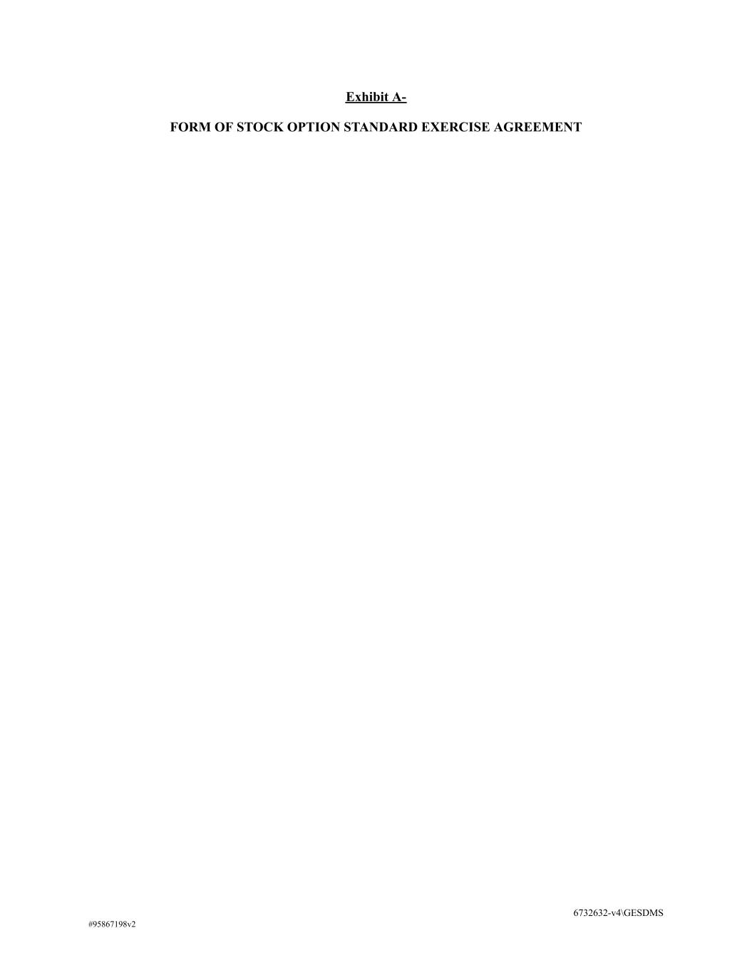 Exhibit A- FORM OF STOCK OPTION STANDARD EXERCISE AGREEMENT 6732632-v4\GESDMS #95867198v2