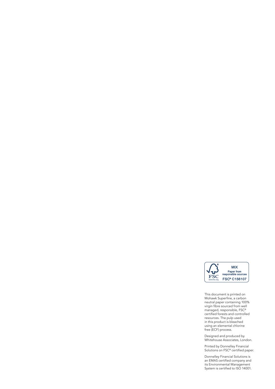This document is printed on Mohawk Superfi ne, a carbon neutral paper containing 100% virgin fi bre sourced from well managed, responsible, FSC® certifi ed forests and controlled resources. The pulp used in this product is bleached using an elemental chlorine free (ECF) process. Designed and produced by Whitehouse Associates, London. Printed by Donnelley Financial Solutions on FSC® certifi ed paper. Donnelley Financial Solutions is an EMAS certifi ed company and its Environmental Management System is certifi ed to ISO 14001.