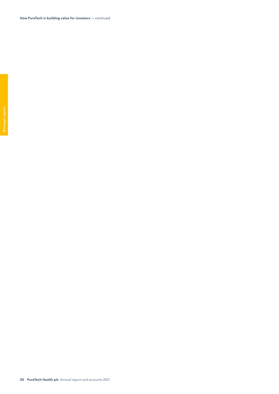 30 PureTech Health plc Annual report and accounts 2021 St ra te g ic r ep o rt How PureTech is building value for investors — continued